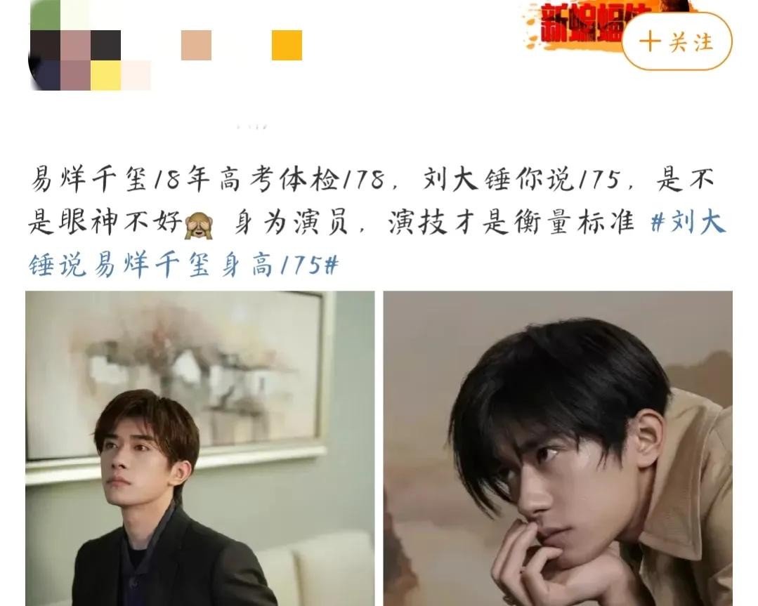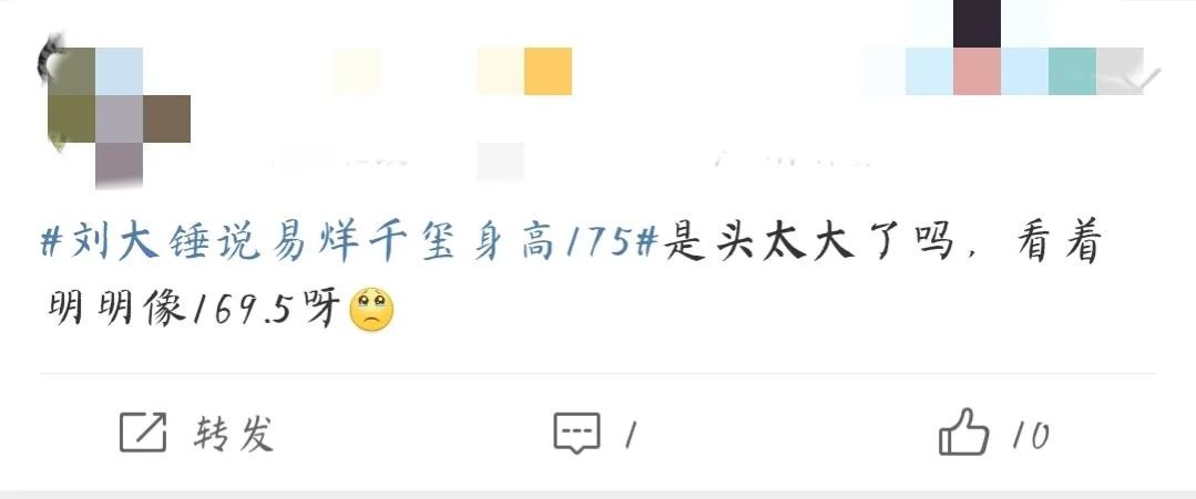 刘大锤曝光易烊千玺身高只有175厘米后,“易烊千玺身高只有175”的话题迅速登上了热搜,引起了轩然大波。