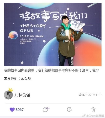 2019年11月9日晚, 林俊杰《圣所2.0》世界巡回演唱会济南站在山东省体育中心圆满落幕。