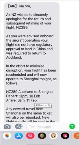 截至发稿时,新西兰航空已安排新飞机重新执飞该航班。目前飞机已经起飞,预计将于北京时间11日早上6时抵达上海浦东国际机场。
