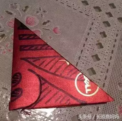 10. 如果没有现成的灯笼穗,可以用一个红包封自己做。先沿长边对折