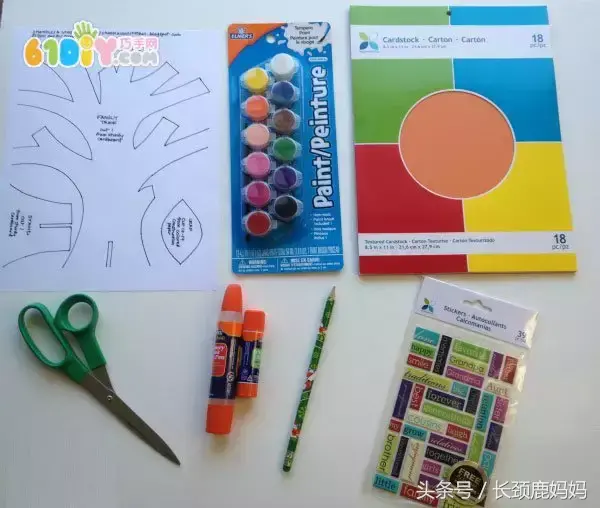 工具:铅笔(打草稿用)、水彩笔、广告颜料、保丽龙胶或白胶、剪刀