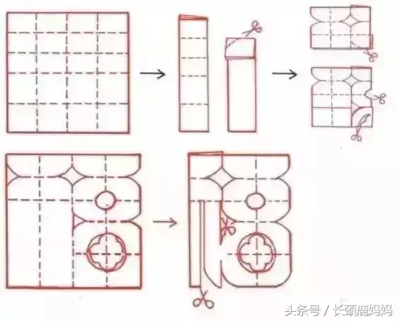 同样按图案剪开,为和刚才的条状对接做准备。