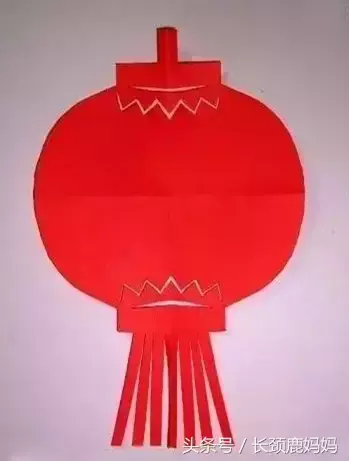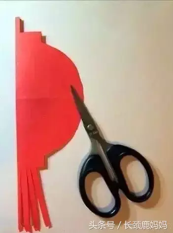 第一步:把红色纸对折,然后剪出灯笼的轮廓,像下面这样。
