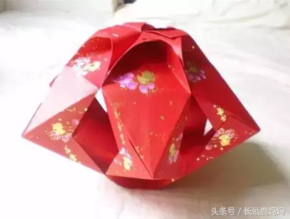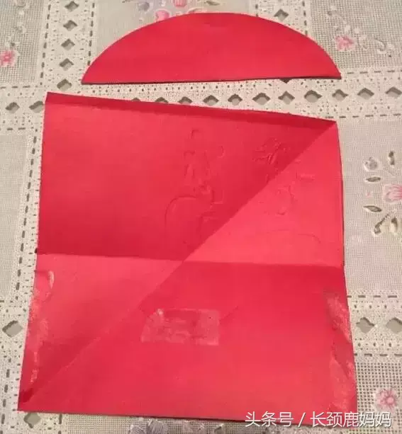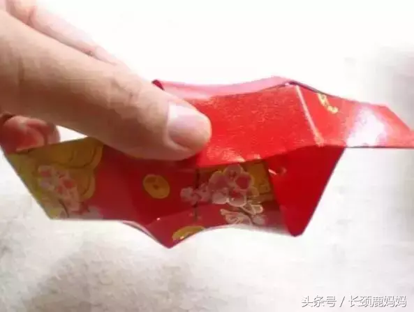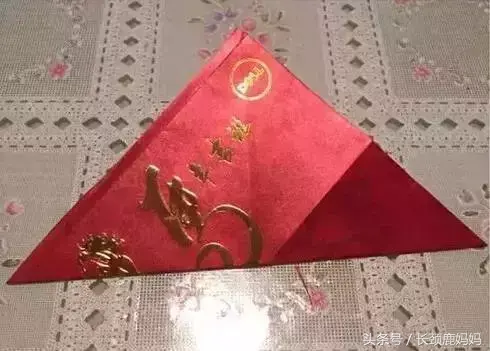 7. 将同一个红包封订起的两角向内弯,订在一起