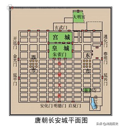宇文恺经过一番调研,最终在长安原址东南处的龙首原建立了新城,名为大兴城,后大兴城改名为长安。此时的长安城基本呈规则的几何四边形。东西长9721米,南北宽8651米,总面积达84平方公里。