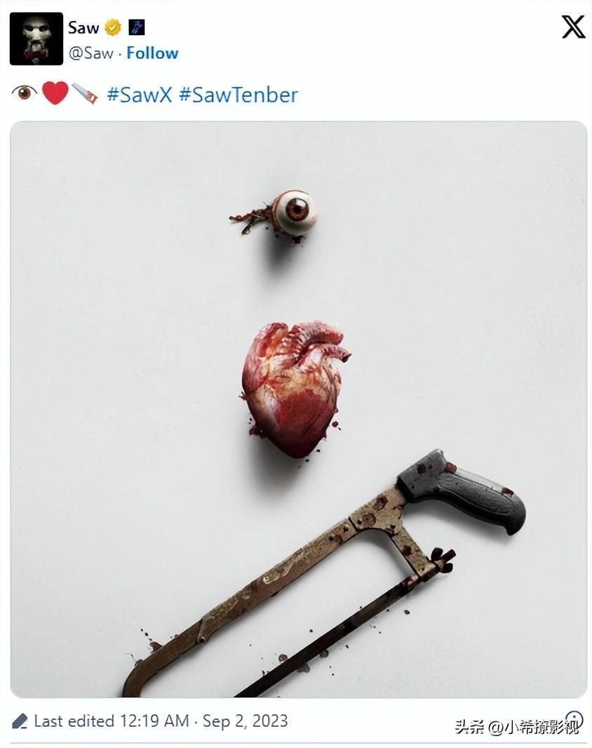 《电锯惊魂10》将于9月29号上映。《电锯惊魂》的官方账号发布了一张新的海报,来暗示这仍然会是一部毛骨悚然的电影。